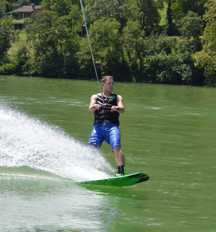 Beim Wakeboarden sind die Füsse mit Hilfe einer Bindung auf einem Brett festgeschnallt. Mit Hilfe einer Leine wird der Wakeboarder hinter dem Boot bei einer Geschwindigkeit zwischen 28 und 34km/h gezogen. Die geübteren Fahrer können einige Tricks erlernen. Angefangen beim über die vom Boot erzeugten Wellen zu springen bis hin zum Double Tantrum.